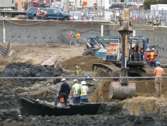 The vessel’s name was Rome and it was discovered in 1994 just south of Market Street and right beneath Justin Herman Plaza on the Embarcadero, almost two decades after hull remains of the Niantic were excavated underneath the Mark Twain Plaza Complex of the Financial District in 1978.