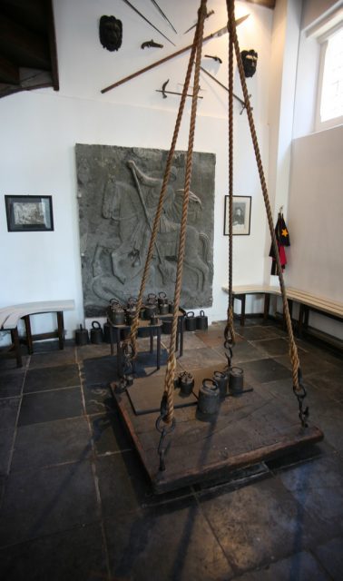 A person would be stripped of their clothes (so it was sure that they didn’t have anything hidden that would make them weigh more), given a gown and then placed on the scales. If their weight was reasonable for their size, they would later receive an official Certificaet van weginghe (a weight certificate) which proved them innocent. The accused had to pay for the license but any price seemed fair for the life-saving piece of paper.