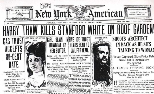 But Nesbit’s fame took a very dark turn after the scandalous murder of architect and New York socialite Stanford White by Evelyn’s crazed husband, Thaw. The shooting happened on the rooftop of Madison Square Garden Theater in June 1906, and led to what the press called “the Trial of the Century,” the first time that phrase was used. The reason for the millionaire taking White’s life was his belief that White had raped Nesbit when she was 14.