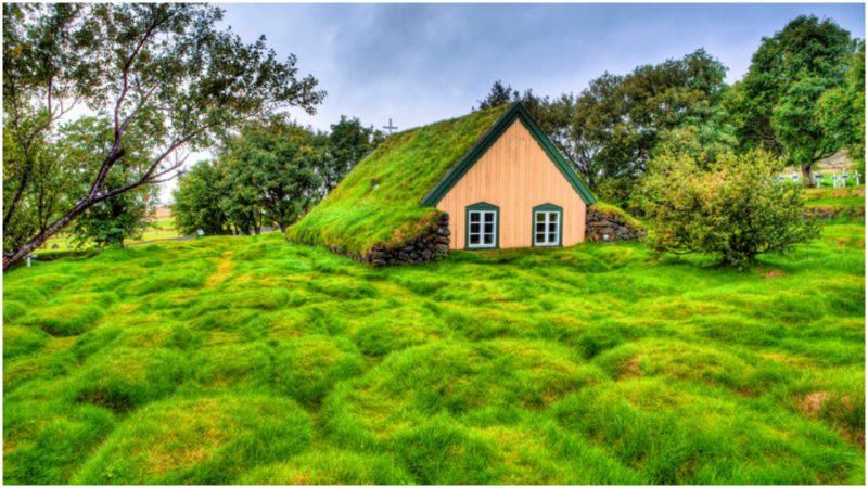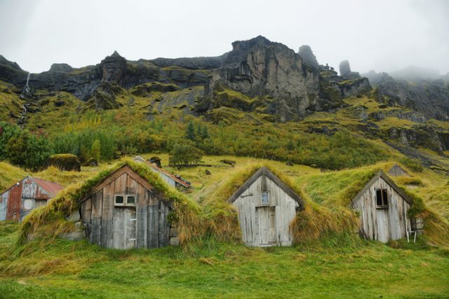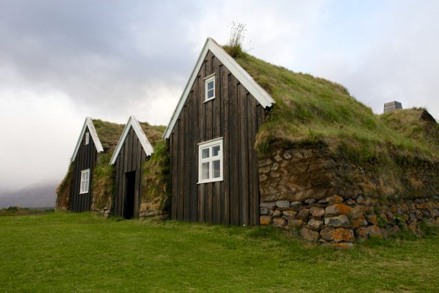 Rocks and turf help insulate the homes in Iceland’s country side.