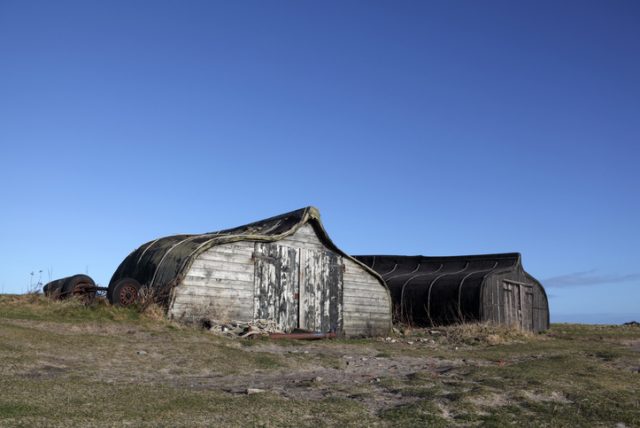 The upturned boats are coated with tar to make them waterproof, but being so close to the sea for a long period, many of the sheds have still become rusted and decayed.