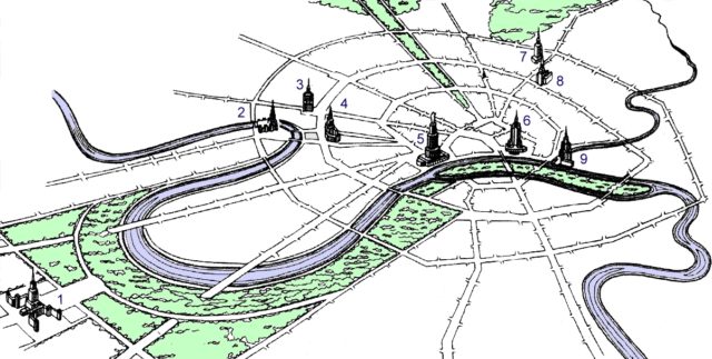 This was not the Soviet State’s first ambitious architectural project. Around a decade before construction began on the seven Stalinskie Vysotki (Stalin’s High-rises), Sergey Kirov put forward a proposal for the Palace of the Soviets, which would be a major administrative center and a demonstration of the might of the then recently formed Soviet Union.