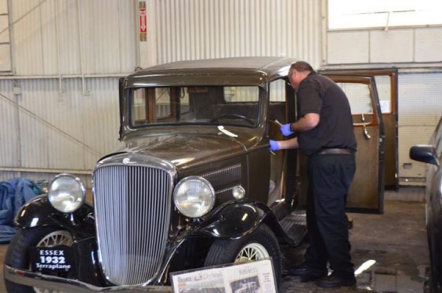 The vintage 1932 green and black Hudson Essex Terraplane had been stashed in the back of a locked trailer on an industrial parking lot in Los Angeles, when thieves drove off with the trailer last week, likely not knowing what was inside. Police recently found the car dumped by the side of the road.