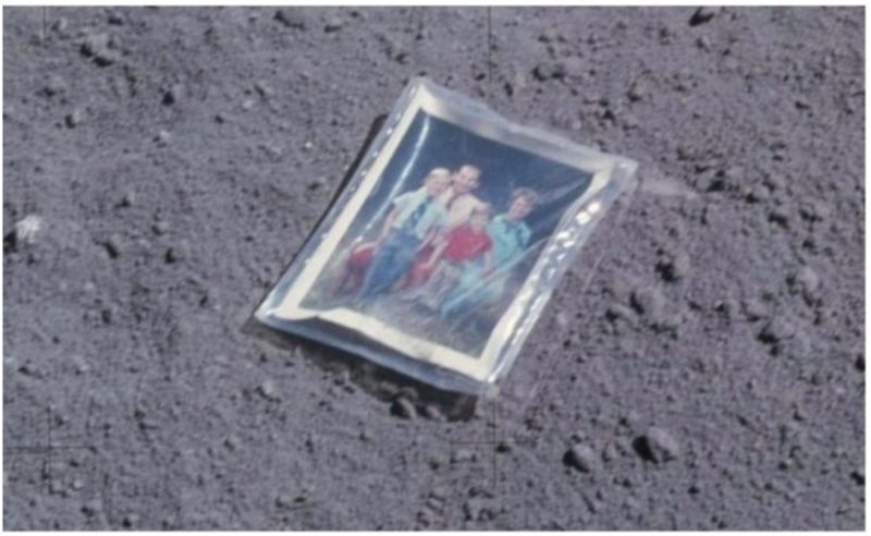 - A family photograph left by astronaut Apollo 16 Charles Duke, as requested by his kids, “so the whole family can go to the moon.“