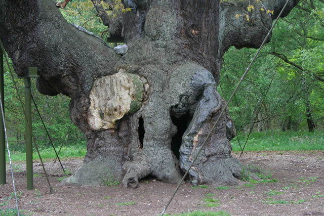 Its hollow inside, a victim of aĀ fungal disease, is possibly one reason why people started to believe it was the place where Robin Hood would seek shelter. But in reality, it might be that an ancestor tree to the Major Oak fulfilled such a function of providing a hideout to the favorite trickster hero on the island.