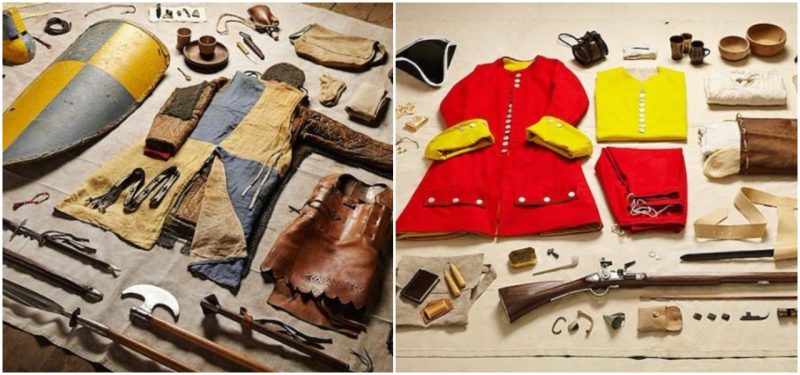 Over the past millennium, the inventory carried by the common British soldier has evolved significantly. Now, thanks to photographer Thom Atkinson, whose series entitled “Soldiers’ Inventories” captures the battle kits from the Battle of Hastings through the Battle of Agincourt in 1415 to the Falkland’s Conflict in 1982, we have a clear look through history and learn some intriguing details about what a regular British soldier carried in battle over the past 10 centuries.