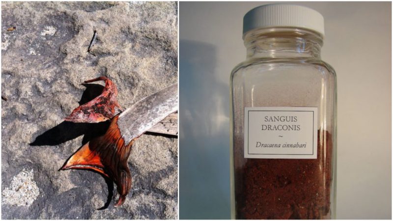 The pigment in the tree’s gum has numerous uses, including as a dye and also as a colorant in cosmetics. Some women used the powder in a ritual that was supposed to attract a marriage proposal. They would write their lover’s name on a tiny piece of paper, then their own name on the top, sprinkle it with some dragon’s blood, and fold it. Afterwards, they threw it onto burning charcoal while saying a prayer.