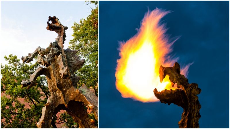 In Europe, one of the best places to go hunting dragon sculpture is in Poland. If you have visited Kraków, you know dragons can be seen everywhere. But one of the most eye-catching representations of the dragon is the Wawel Dragon Statue, close to the Wawel Hill. Thanks to an intervention in the monument design, this sculpture can nowadays even breath fire.