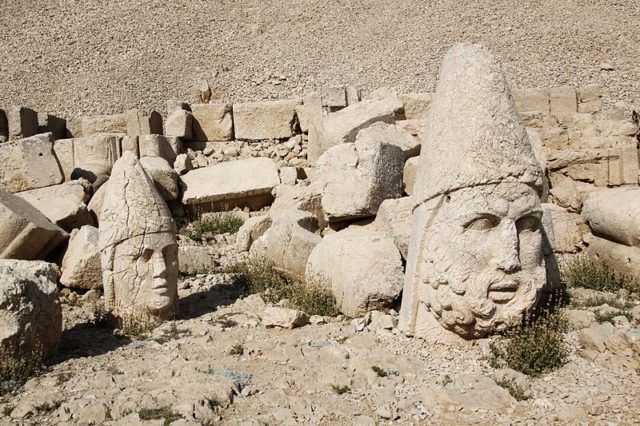 Over the centuries, the statues have all lost their heads, which fell off to the lower level due to frequent earthquakes in the region, or because of iconoclasm. Experts claim that they once stood 30 feet high and that their creation was clearly influenced by both Greek and Persian art, as the independent kingdom of Commagene was located between the two great civilizations.