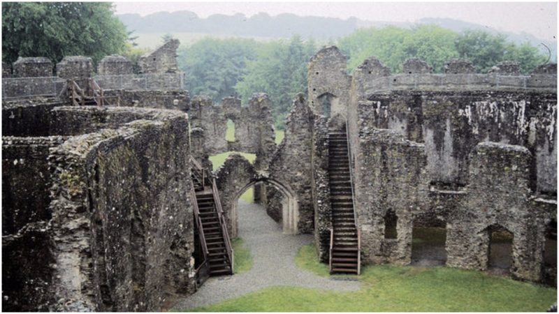 Just as the aforementioned ones, this too was first built from timber and then reconstructed in stone during the 13th century. What is unusual about the design is that the eight-foot-thick outer wall forms a perfect circle, and every room and corridor inside, including the solar, the great hall, the bed chambers, and the guard houses, are all constructed to follow the contour of the thick castle wall.
