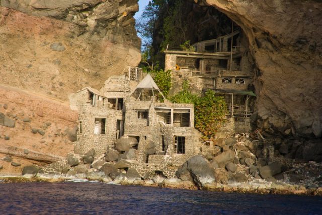 Needless to say, there was no electricity or running water, unless you count the ocean outside the door. Rainwater that collected off pitched walls and floors into cisterns was used for drinking and bathing. The only way to reach the structure was by boat or a hilly hike. Food and drink were kept cool in propane-operated refrigerators. Gladys even had a second-hand piano lugged in. Eventually, 16 separate structures were constructed on the site.