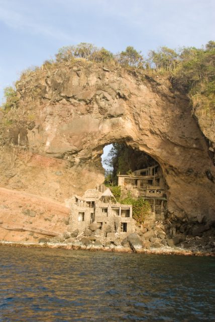 It sounds like the perfect 1960’s fever-dream house: a multilevel dwelling set in a giant rock hole in a massive stone arch overlooking the clear blue Caribbean Sea on the island of Bequia, the largest of the Grenadines, through which an inhabitant could sometimes view the rising moon. Even its name was evocative of the era: Moonhole.