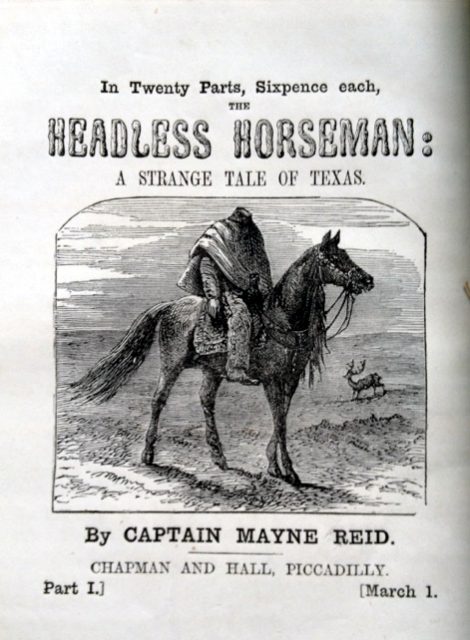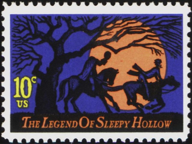 “Gigantic in height, and muffled in a cloak, Ichabod was horror-struck on perceiving that he was headless! But his horror was still more increased on observing that the head, which should have rested on his shoulders, was carried before him on the pommel of his saddle!”- Washington Irving, The Legend of Sleepy Hollow.