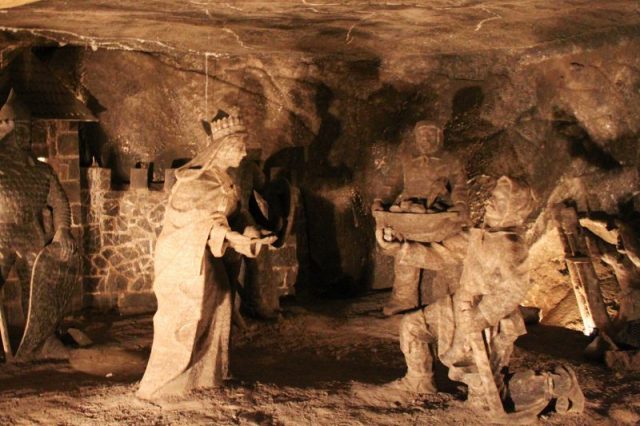 Besides the generation of miners who left their imprint in the saline chambers, professional artists have also found refuge here, at least to seek inspiration for their artwork. Not only sculptors, but writers and painters have drawn influence here. One example is the 19th-century Polish painter Jan Matejko, noted in Polish history for his artistic depictions of significant national events for the country. Flabbergasted by the salt mines, he produced several paintings, one of which shows an attempt to save the site from fire.