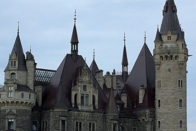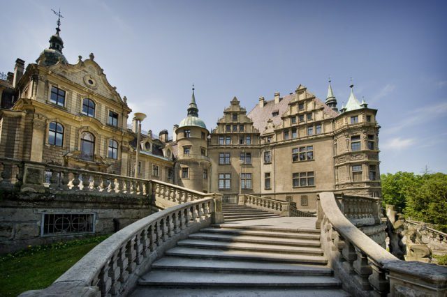 Moszna is a gigantic dreamlike structure spread over 8,400 square yards, an edifice that at first glance, with its grand design and enormity, suggests an English castle from the Elizabethan era. Yet when seen up close, Moszna shows an eclectic style, the result of the place being home to different families, at different times.