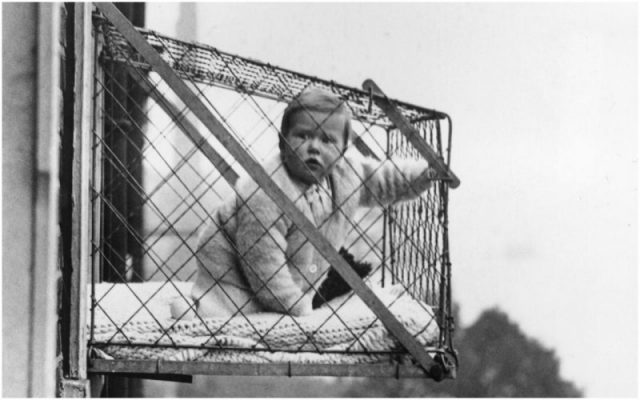 Fresh air is good for everyone’s health, especially kids. That’s accepted conventional wisdom today. Just look at all the babies being paraded around in high-end strollers and baby backpacks. But it was a radical notion at the turn of the last century, as were some of the ideas of how to get fresh air. In a move that was either ingenious or insane, depending on your point of view, some mothers living in urban tenements gave their offspring the necessary outdoor time by putting them on platforms attached to windowsills–in a baby cage.