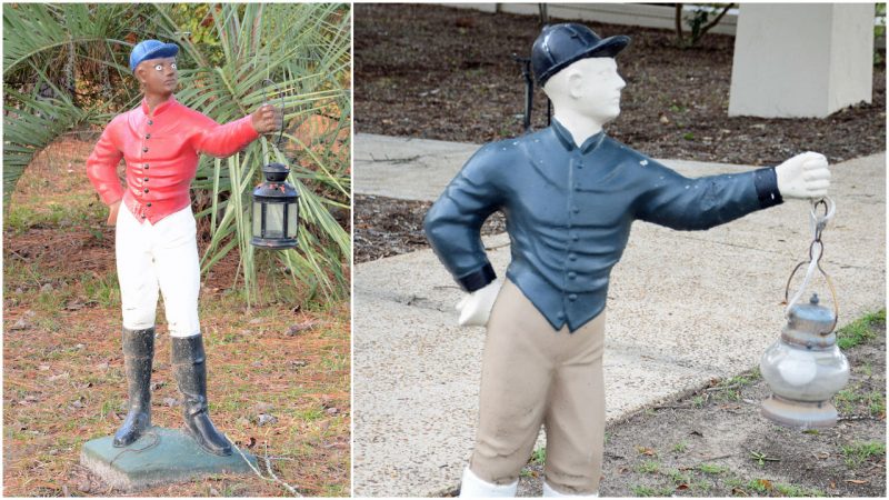 They’ve been around for hundreds of years. You still see them in some front yards in parts of the United States and 33 of them line the wrought-iron entrance to the 21 Club, New York City’s famous former speakeasy. They are lawn jockeys, or men, dressed in riding silks, their right or left arm extended up holding a ring or a lantern. Depending on their color and the cut of their cloth, they are either a nostalgic nod to historic hospitality or a hated symbol of racism. Context is everything.