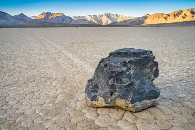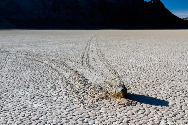 The research team calculated that in the right conditions during winter months, rainfall pooled on the surface of the playa would freeze during the night and then melt the following day. As the ice sheets gradually thin, pieces attached to the rocks can break off, allowing them to freely glide across the surface when pushed by the force of just a little wind. This is how the trails were produced. It just took the right amounts of ice, water, and wind, to debunk a mystery.