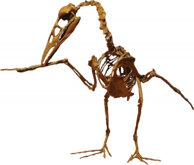 “At its origin, the beak was a precision grasping mechanism that served as a surrogate hand as the hands transformed into wings,” Bhullar says. Which means the bird likely used its beak just to collect fish or other seafood from the waters, only to then toss the catch into its scary, teeth-filled mouth.