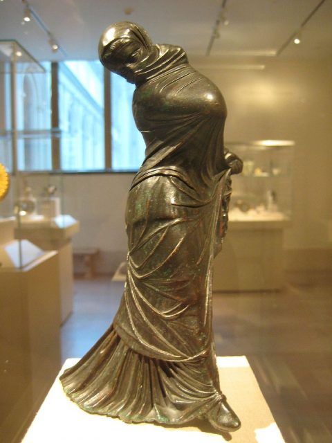One very intriguing detail of a bride’s clothing in ancient Rome was her veil, which was a necessary part of her wedding day attire. Called a flammeum, it covered the bride’s head, but not her face as is the modern tradition, and was large enough to wrap around her. There are some uncertainties about the flammeum and experts have not agreed on its color, but its purpose seems to be clearer.