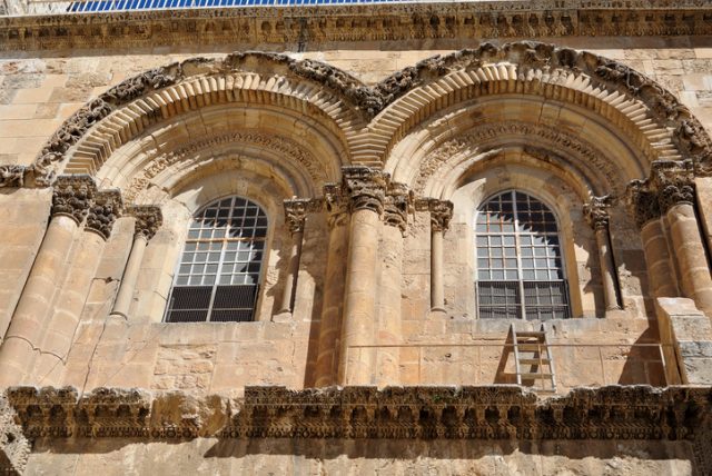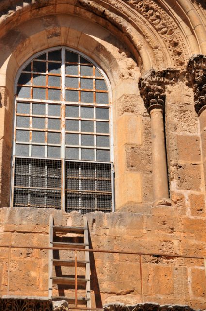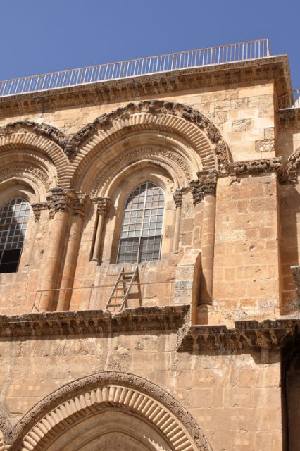 There is an old immovable ladder resting on a ledge at perhaps the most significant church in Christianity.