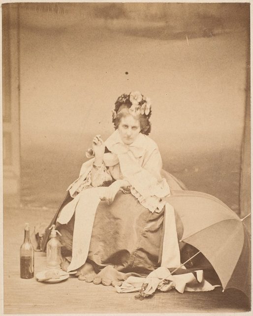 Her life was not all glimmer and glamour, however. As she aged, she had the photographer document her decline. Later photos show her veiled and toothless. One eerie portrait shows her in a coffin.