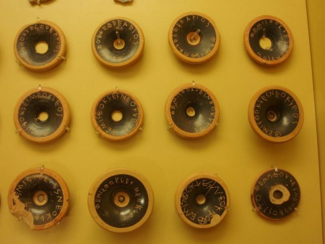 Ostracism was a civil practice, in which pottery sherds, usually from broken urns or vases, were used as ballots to place a vote. These potsherds were called ostracon, which is where we get the word for ostracism.