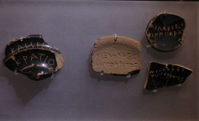 Ostracism was a civil practice, in which pottery sherds, usually from broken urns or vases, were used as ballots to place a vote. These potsherds were called ostracon, which is where we get the word for ostracism.