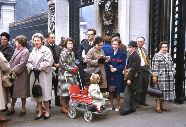 London visitors from around the world await the changing of the guard at Buckingham Palace, 1962. Author Don O’Brian CC BY 2.0