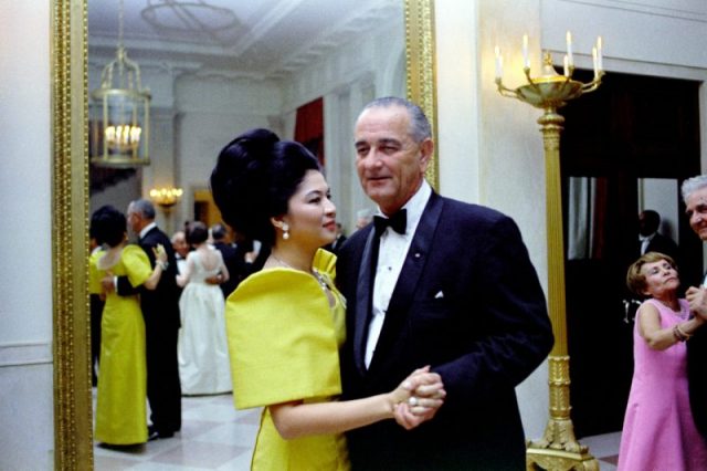 Philippine first lady Imelda Marcos with U.S. President Lyndon B. Johnson while sporting her iconic bouffant hairstyle, 1966.