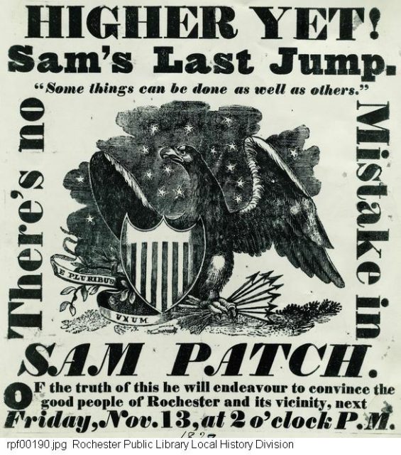 Patch’s luck didn’t last that much longer. A month later he died jumping 125 feet into the Genesee River, which flows into Lake Ontario. Reportedly the descent went wrong and his corpse was found months later. Eerily the event was billed as “Sam’s Last Jump” and the date was Friday 13th.