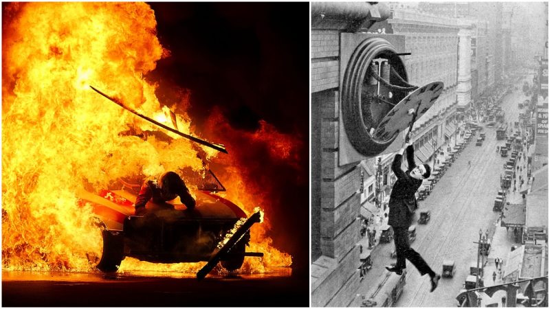 As for the danger men and women of the cinema, it was a risky enterprise. From Harold Lloyd dangling from a clock to Buster Keaton nearly being flattened by a house, sometimes stunts were safe and well-planned, sometimes they weren’t.