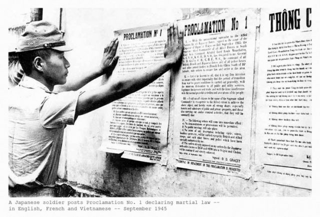 This was a problem in many ways – the first being that in the time between the formal Japanese surrender in early September 1945 and the arrival of the British at the end of the month, a meeting of various Vietnamese groups in Hanoi led by Ho Chi Minh had declared Vietnam to be an independent nation.
