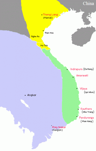 In the south, the scattered Vietnamese people were subjects of both the Khmer Empires (centered in present-day Cambodia), and the Champa Kingdom of what is today the southern Vietnamese coast (the Champa were a Malayan-Polynesian people who had invaded by sea).