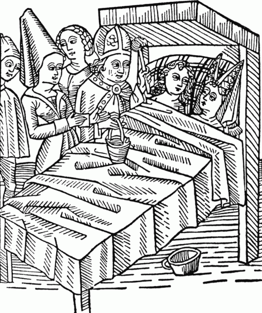 When the fun and games were over, the curtains around the bed were drawn around and the couple was left to their own devices. After the 1509 wedding of Henry VIII and his first wife, Catherine of Aragon, “Catherine was led from the wedding feast by ladies in waiting, then courtiers de-robed Henry in the bedchamber,” according to historian Lucy Worsley.