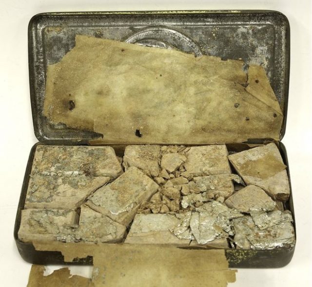 There is still a trace of chocolate aroma to the tin today, although experts say don’t even think about eating it.