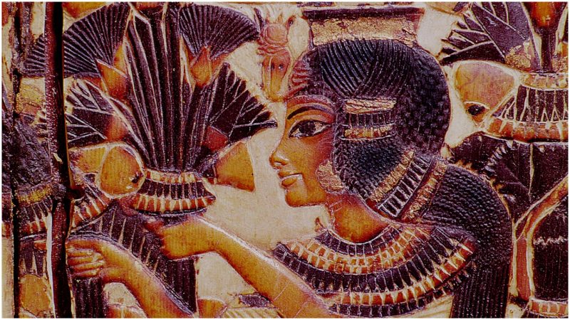 Zahi Hawass observes in his book The Golden Age of Tutenkhamun, “To judge from their portrayal in the art that fills the golden king’s tomb, this was certainly the case [that they loved one another]. We can feel the love between them as we see the queen standing in front of her husband giving him flowers and accompanying him while he was hunting.”
