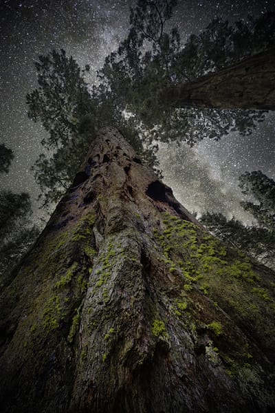 The first of her two books was Ancient Trees: Portraits of Time. The second, done with slow exposures under night skies, is the dazzling Ancient Skies, Ancient Trees. In her own artistic statement, Moon talks about the meaning she finds in her work: “Standing as the earth’s largest and oldest living monuments, I believe these symbolic trees will take on a greater significance, especially at a time when our focus is finding better ways to live with the environment.”