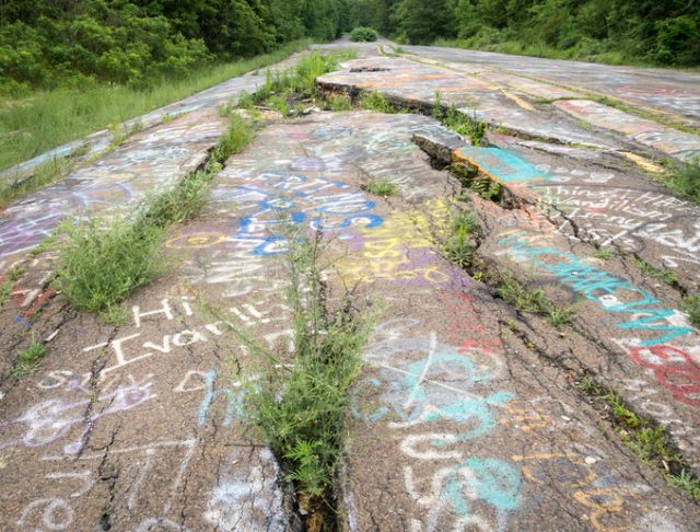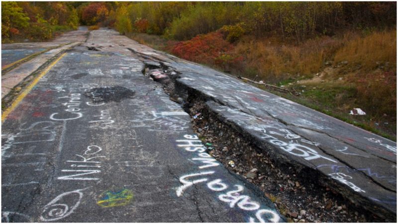 Because of the danger posed by mine subsidence, route 61 was diverted around Centralia. The highway section that runs through the old town site is cracked and buckled from the heat of the fire below. By 1992, Congress had decided to cancel Centralia’s zip code.