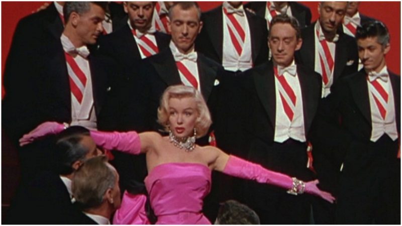 Monroe’s role in the film will be best remembered due to her musical performance of the song “Diamonds Are a Girl’s Best Friend” which was complemented with her seductive choreography and male suitors dressed in tuxedos. This unforgettable scene probably wouldn’t be so admired if it wasn’t for Monroe’s pink designer gown.
