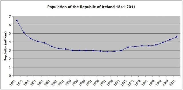In 1844, the population of Ireland was approximately 8 million. Yet, on August 10, 2018, the Irish-Amer FFF – Census Bureau reported the population of Ireland as just under five million. Remarkably, most of this population decline took place between the years of 1844 and 1849.