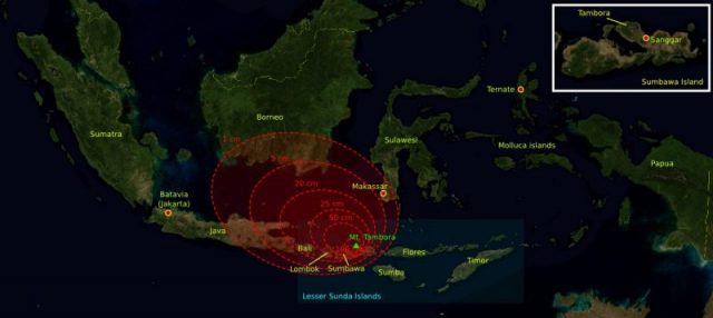 One of the claimed scientific reasons for this climate anomaly was the biggest volcanic eruption in history which took place in Indonesia on Mount Tambora in 1815. The aftermath of this event resulted in large quantities of dust and ash leaking into the atmosphere causing a serious change decrease in temperatures.