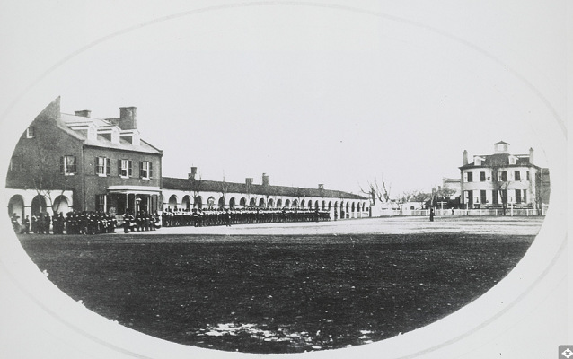 The barracks are located at the corner of 8th and I streets. After doing careful exploration of the D.C. area, the location was chosen by then-President Thomas Jefferson and Lt. Col. William Ward Burrows by virtue of being both near the Washington Navy Yard and still remaining only a short march to the Capitol.