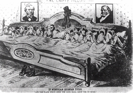 His first wife, Emma, however, did not appreciate Smith’s polygamous ways, and may not even have known about the full extent. She accepted (temporarily) Smith’s marriage to 4 women who boarded in their house, but soon made them leave. Smith was shot dead while in prison, having been charged with treason in 1844.
