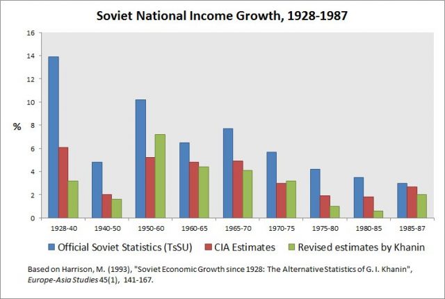 During those same decades, Soviet GNP stayed consistently at about half that of America. Samuelson never satisfactorily addressed this issue, attributing the actual data to issues like “bad weather” and not to how he was making his evaluations.