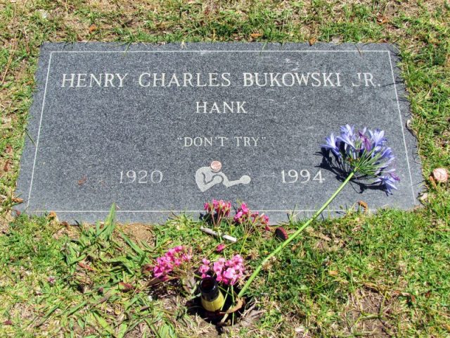 In an interview Watt conducted with Linda King, the late poet’s wife, a light was shed on the lasting mystery. When the reporter asked her what’s the deal with the epitaph, Linda explained that apparently the phrase originates from the time when Bukowski was asked to reveal something about his views on writing to the editor of a book titled Who is Who in America.