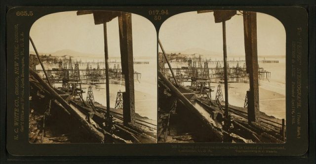 The first oil fields emerged on the surface throughout the 1860s, and the first drills were made in the area of Central Valley. In part, this helped San Francisco grow, at the time the most populated area in California at least until the 1906 earthquake.