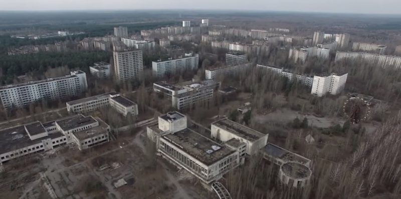 Other footage shows Pripyat from an ariel perspective, as well as the wild area around it. Back then, the area was deemed a convenient enough place to set a nuclear plant due to its remoteness and scarcity of human settlements.