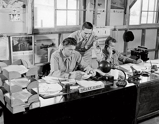 The Tribune reports “Reagan, then 32, was assigned to the Army Air Corps’ motion picture unit at Camp Roach in Culver City… Reagan told of nearly ‘coming to blows’ with the German sympathizer who made several anti-Semitic remarks at a cocktail party.”