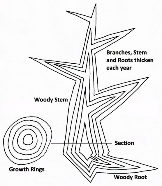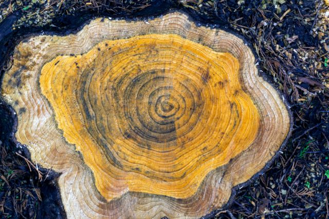 When you look at the cross-section of a tree, you see a series of concentric rings. One ring is the layer of wood produced in one growing season.